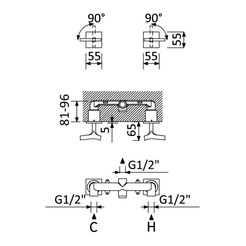 Bruma Royale Mezclador empotrado de 2 orificios con 1 salida Cromo Código de producto: 192 602 1CR