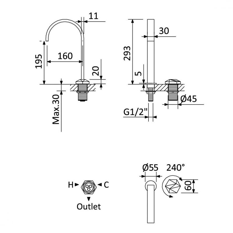 Longitud del desagüe, mm 160