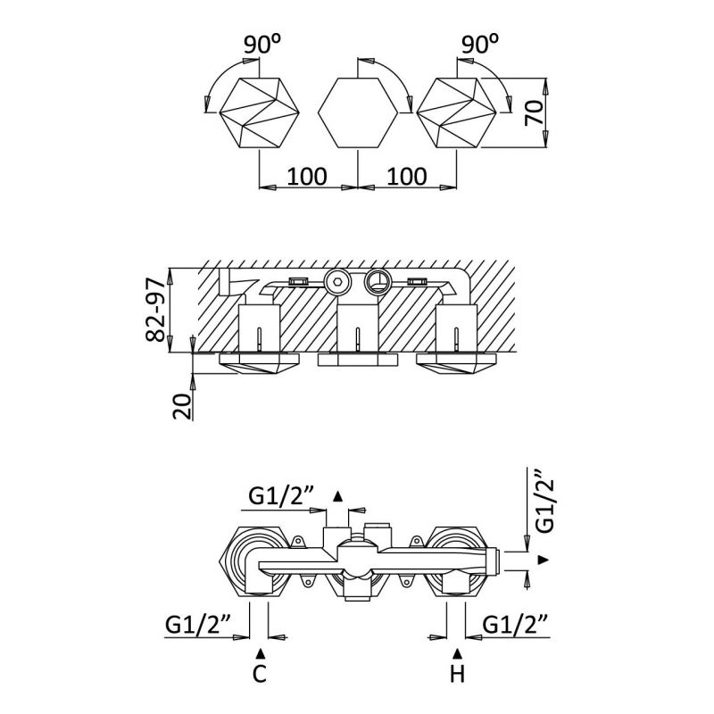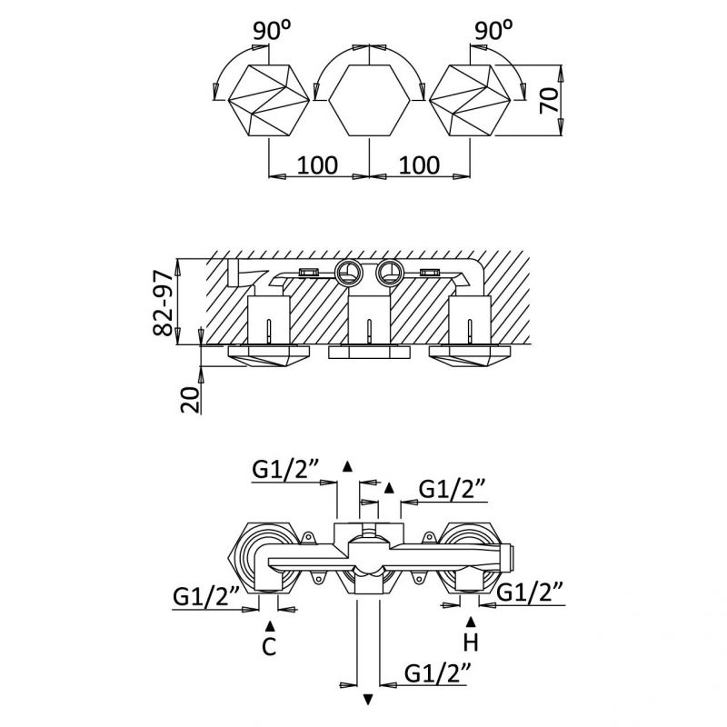 Bruma Utopia Grifo empotrado de 3 orificios, Cromo Código de producto: 1833100CR