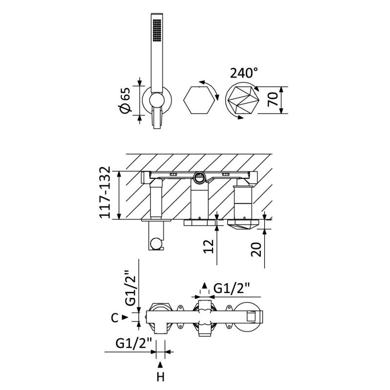 Bruma Utopia Mezclador empotrado Progressive con juego de ducha de mano Niebla matutina Código de producto: 1831420MM