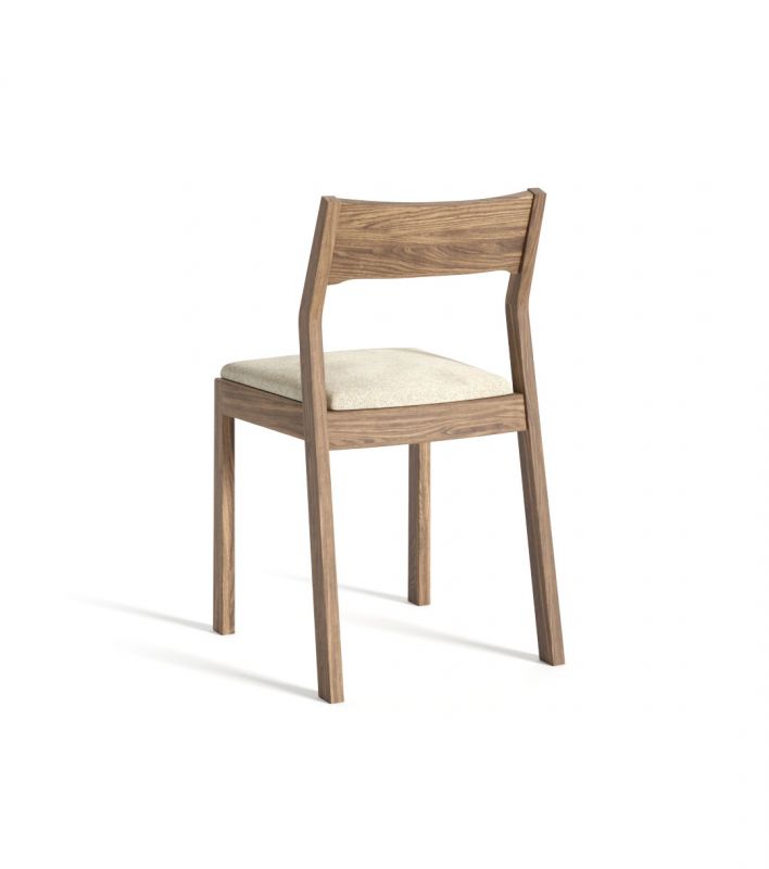 Esta silla de madera tiene un asiento resistente, patas gruesas en forma de paralelepípedo rectangular y un respaldo corto fijado en un ángulo pequeño. Este diseño permite sentarse cómodamente y proporciona un apoyo fiable para la espalda. Gracias a que esta silla está fabricada íntegramente en roble, es: