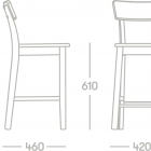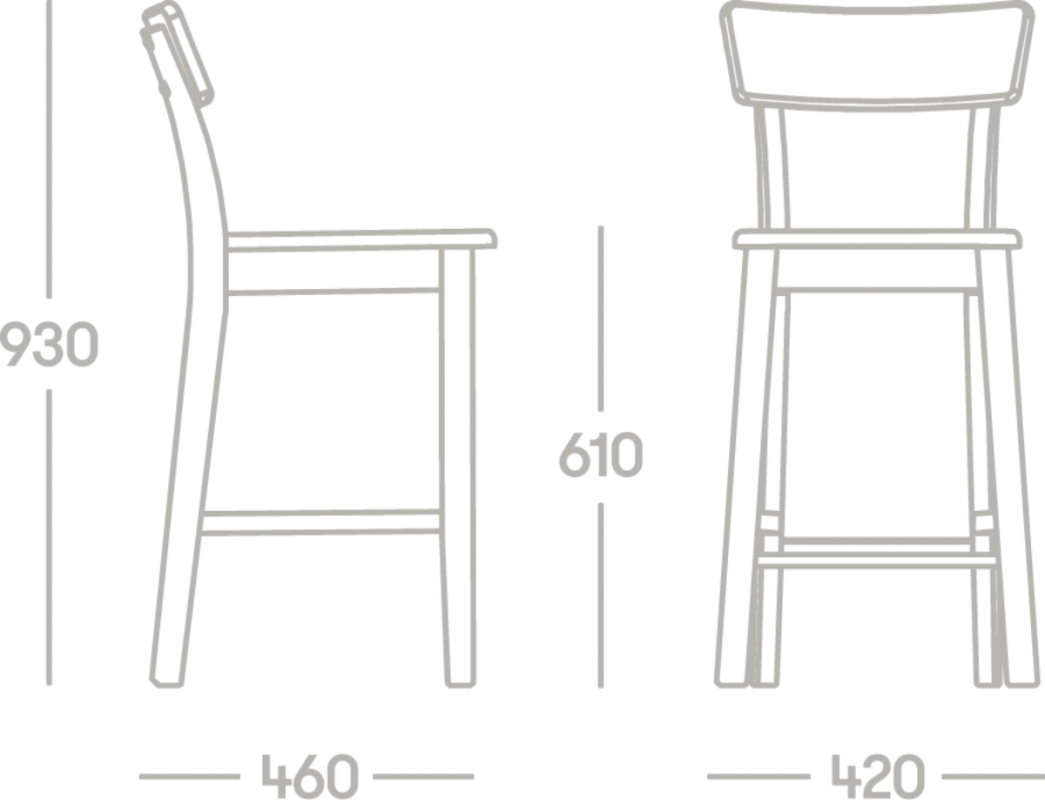 Las patas fiables de la silla se combinan con un respaldo ligeramente curvado que repite las características anatómicas de la estructura del cuerpo humano, por lo que sentarse en ella es un placer. El reposapiés está fabricado en metal, lo que resulta muy práctico. La altura hasta el asiento es de 61 cm. Las patas son fijas, por lo que la altura de la silla no es regulable.